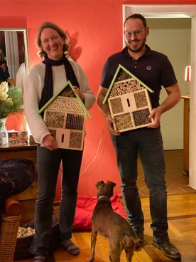 Bei dieser Gelegenheit haben wir es uns natürlich nicht nehmen lassen, unseren ausgeschiedenen Ratsmitgliedern Birgit Wiesner (10 Jahre Stadtrat Zeven) und Lukas Scherak (4 Jahre Gemeinderat Heeslingen) für ihre Arbeit zu danken. Claudia Oetinger war leider verhindert und wird später noch geehrt. Als kleine Aufmerksamkeit gab es wunderschöne Bienen-Nisthilfen, die in echter Handarbeit von Mitarbeiter*innen der Lebenshilfe erbaut wurden.
